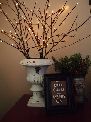 A few months ago, I pinned this image on Pinterest. Loved the lit branches and how it added so much warmth to the vignette.