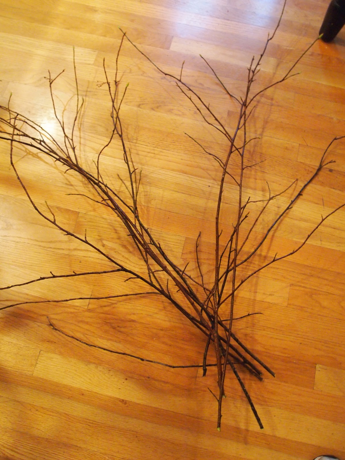 The supplies were simple to gather up...most of which came from the yard and throughout the house. The branches are from the woods behind us.